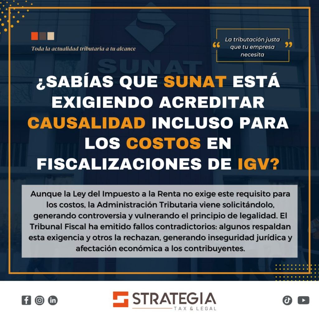 ¿Sabías que SUNAT estás exigiendo acreditar causalidad incluso para los costos en fiscalizaciones de IGV?